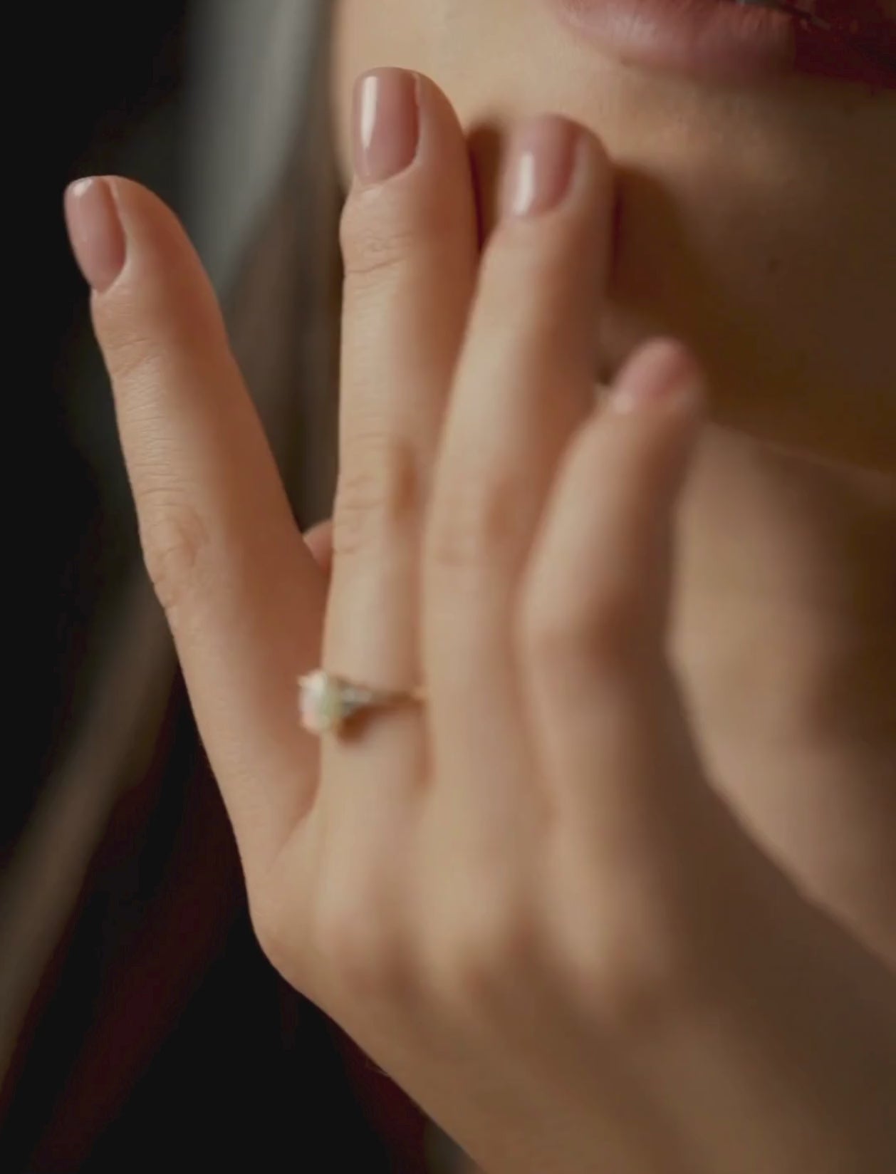 A delicate ring with the Aussie opal as the stand out here here, cradled with some natural diamonds, of course!