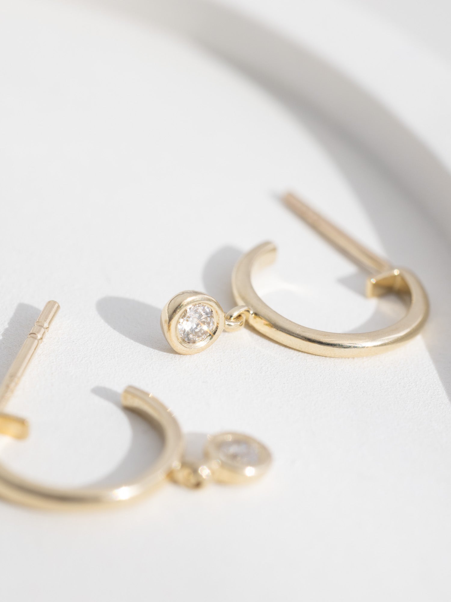 Crafted from solid 9K gold, these hoops feature two brilliant diamonds that shimmer beautifully, reminiscent of the stars in the night sky. The hoops are simple, elegant, and ready to accompany you on your lifelong journey.