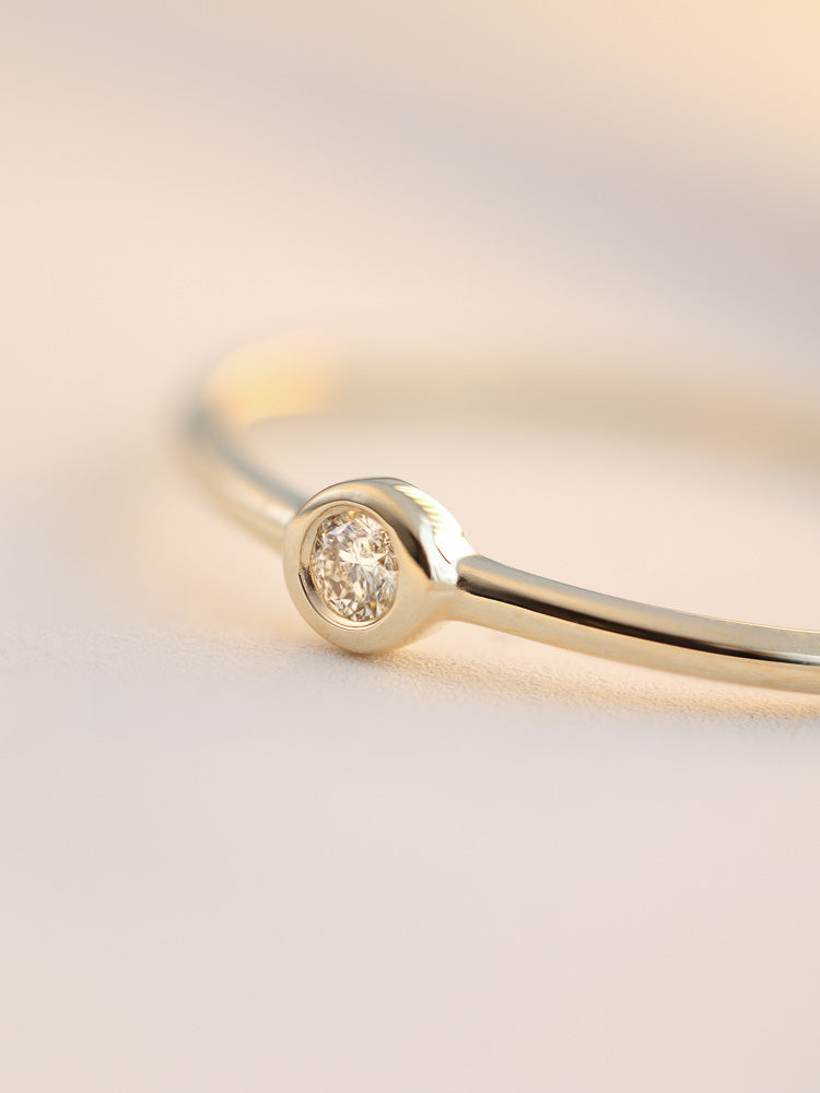 Illuminate your life with the Diamond Sky Ring. Inspired by the goddess of the sun, this ring is radiant, always shining and perfect for stacking. The ring features a beautiful white diamond, bezel set at the centre of a minimalistic and stylish solid gold band.