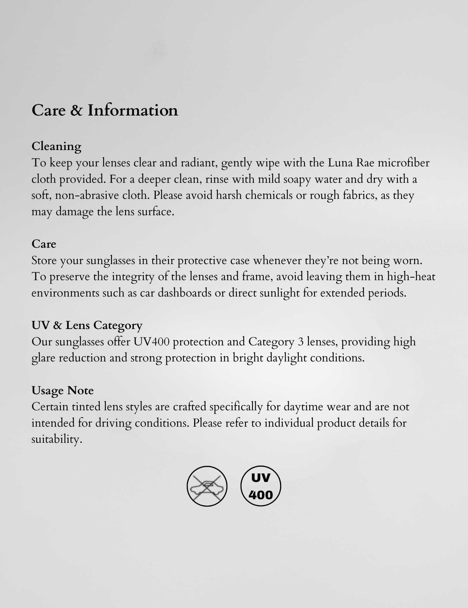 • Premium Packaging: Each pair arrives in a Luna Rae box and includes a complimentary polishing cloth.