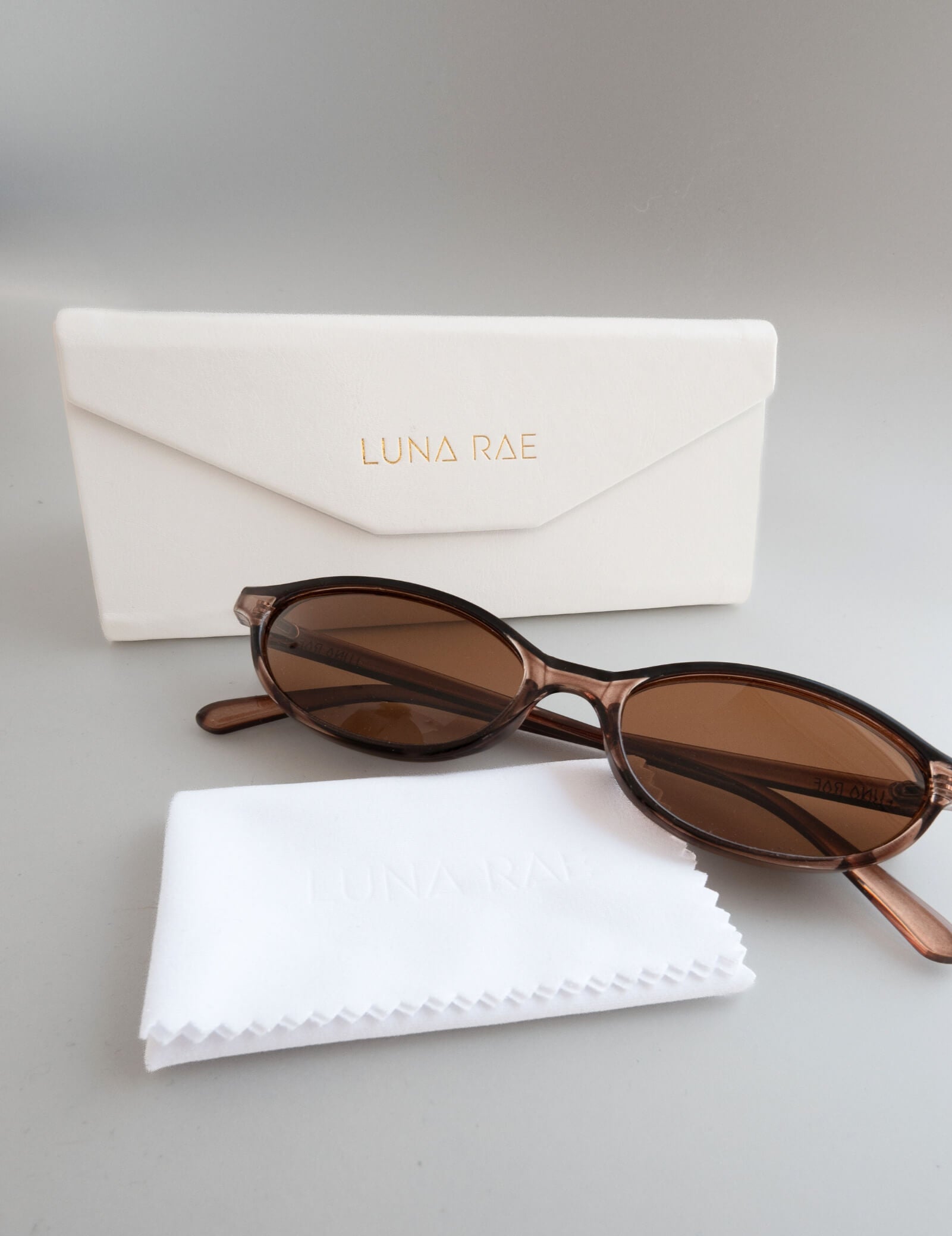 Our Luna Rae frames are made for repeat wear — thoughtfully designed, beautifully balanced, and effortless from every angle. The sort of piece you reach for on the way out the door and keep on long after the sun dips.