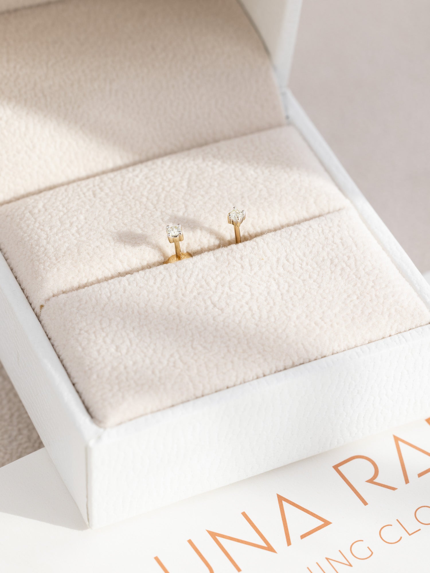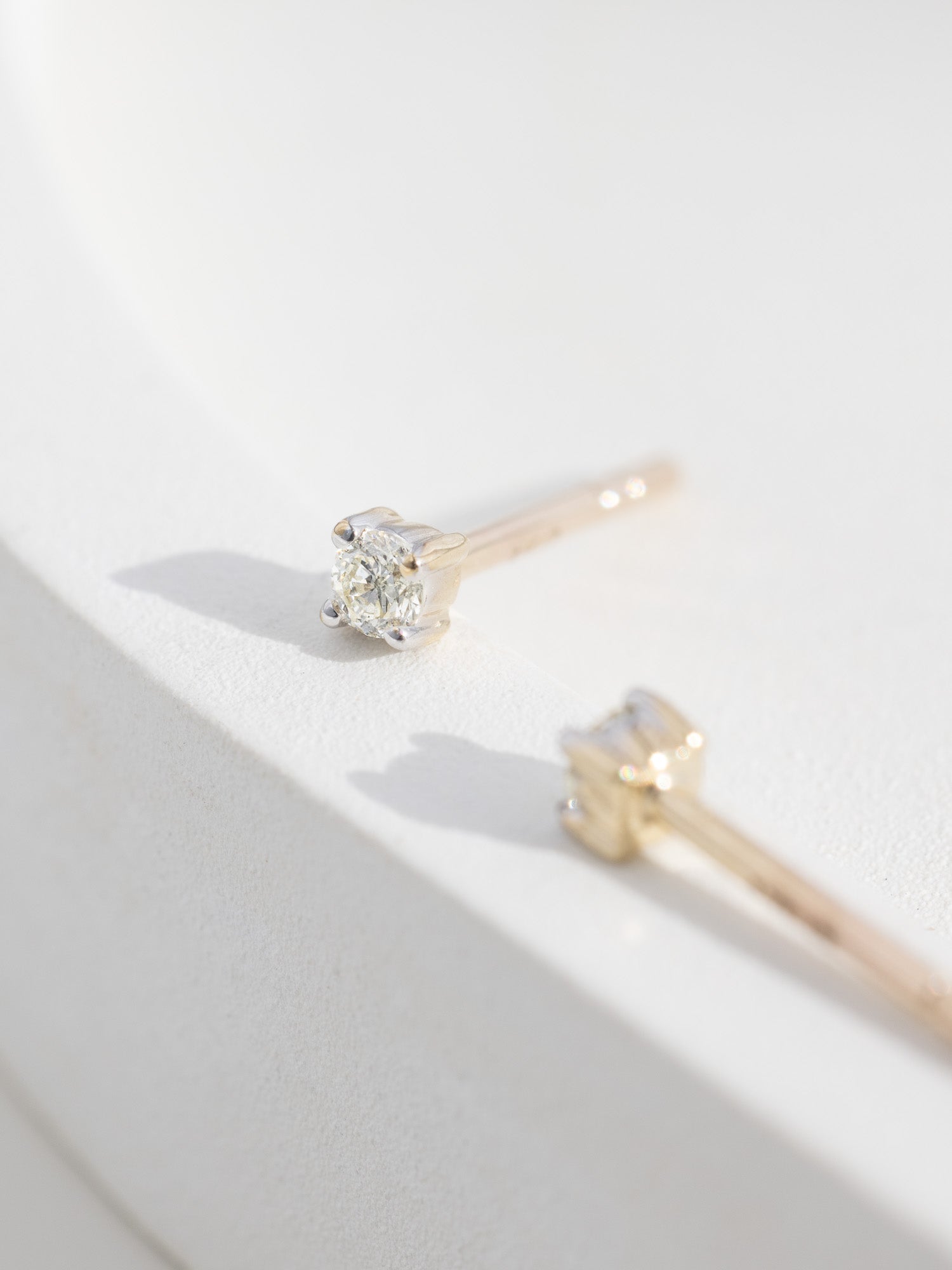 The Halley Studs have a diamond size of 0.03ct each and a total stud size of 2mm diameter. The diamond is set in a Prong Setting, crafted from solid 9k gold, these studs offer a balance of delicacy and substance.