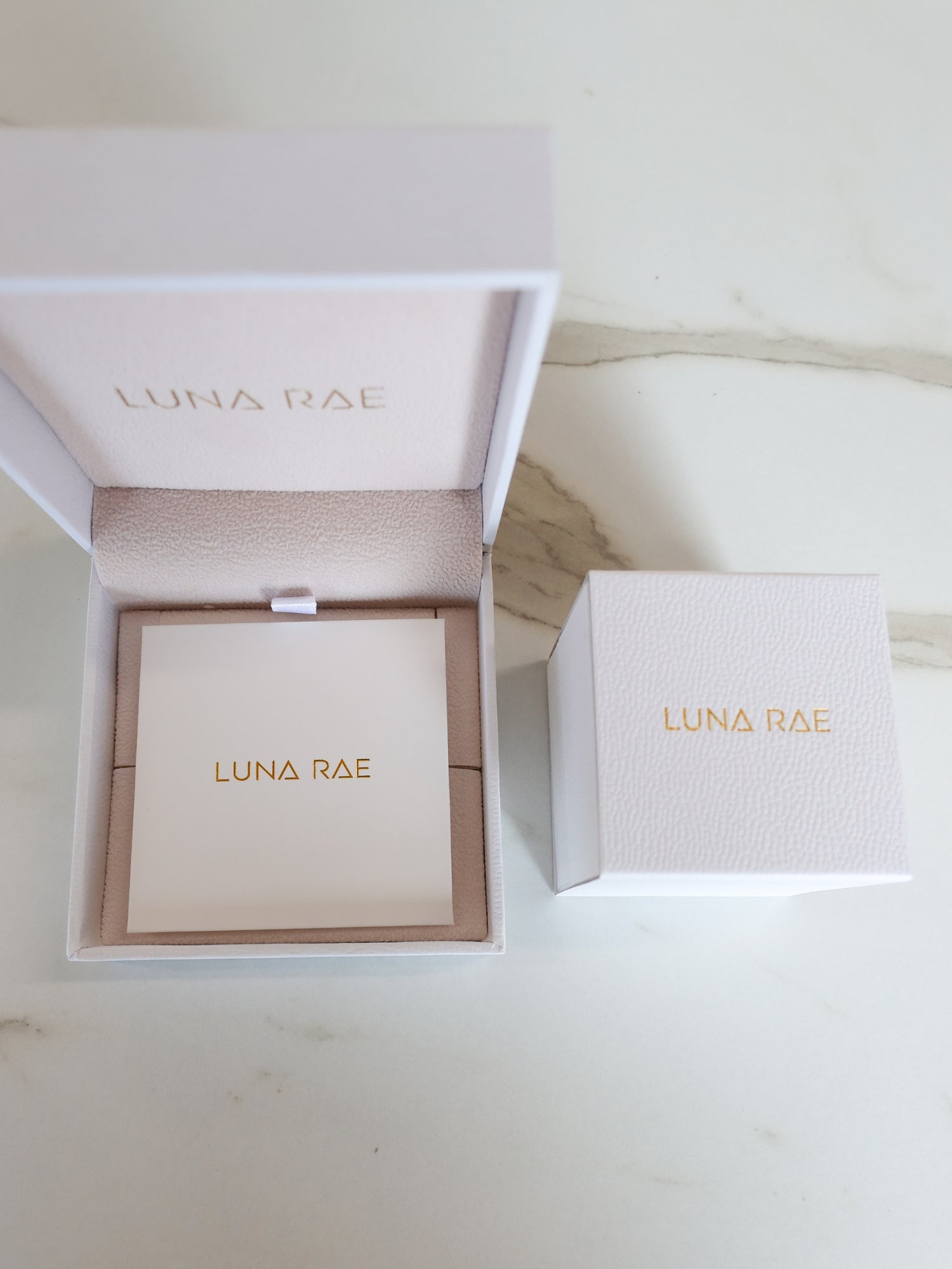 Shop with the assurance. Our lux packaging and personal touch will shine in every purchase. Premium quality packaging with a polishing cloth to keep your Luna Rae piece beautiful.