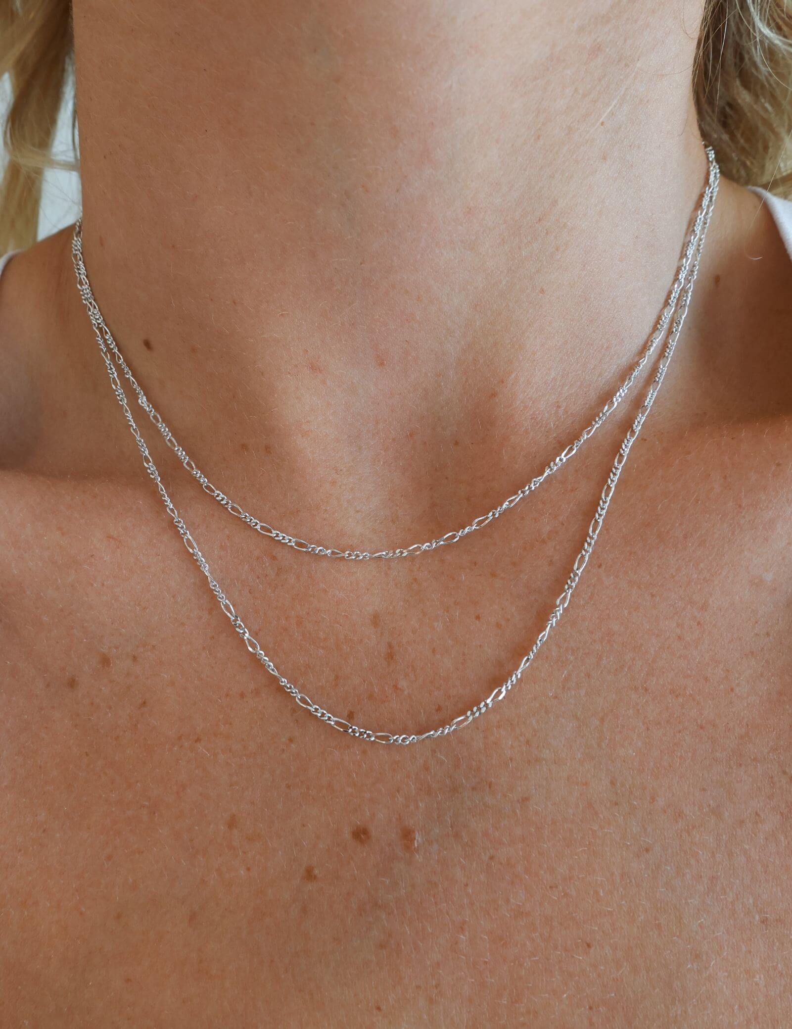 The Figaro Chain is available in 40cm and 45cm lengths, offering a Sterling Silver Figaro style that embodies timeless chic. This thicker style chain can be worn alone or stacked with Luna Rae charms for a versatile look.