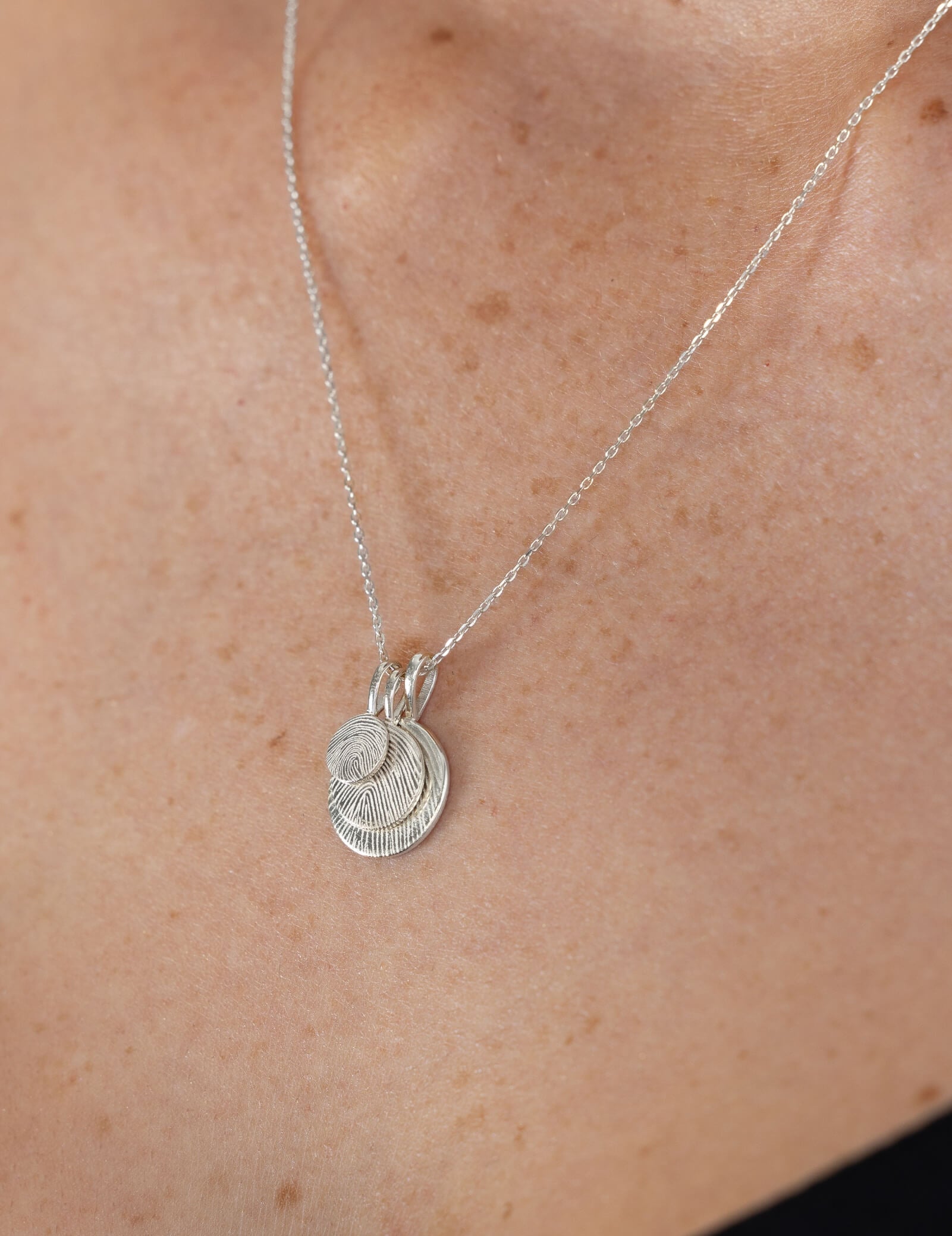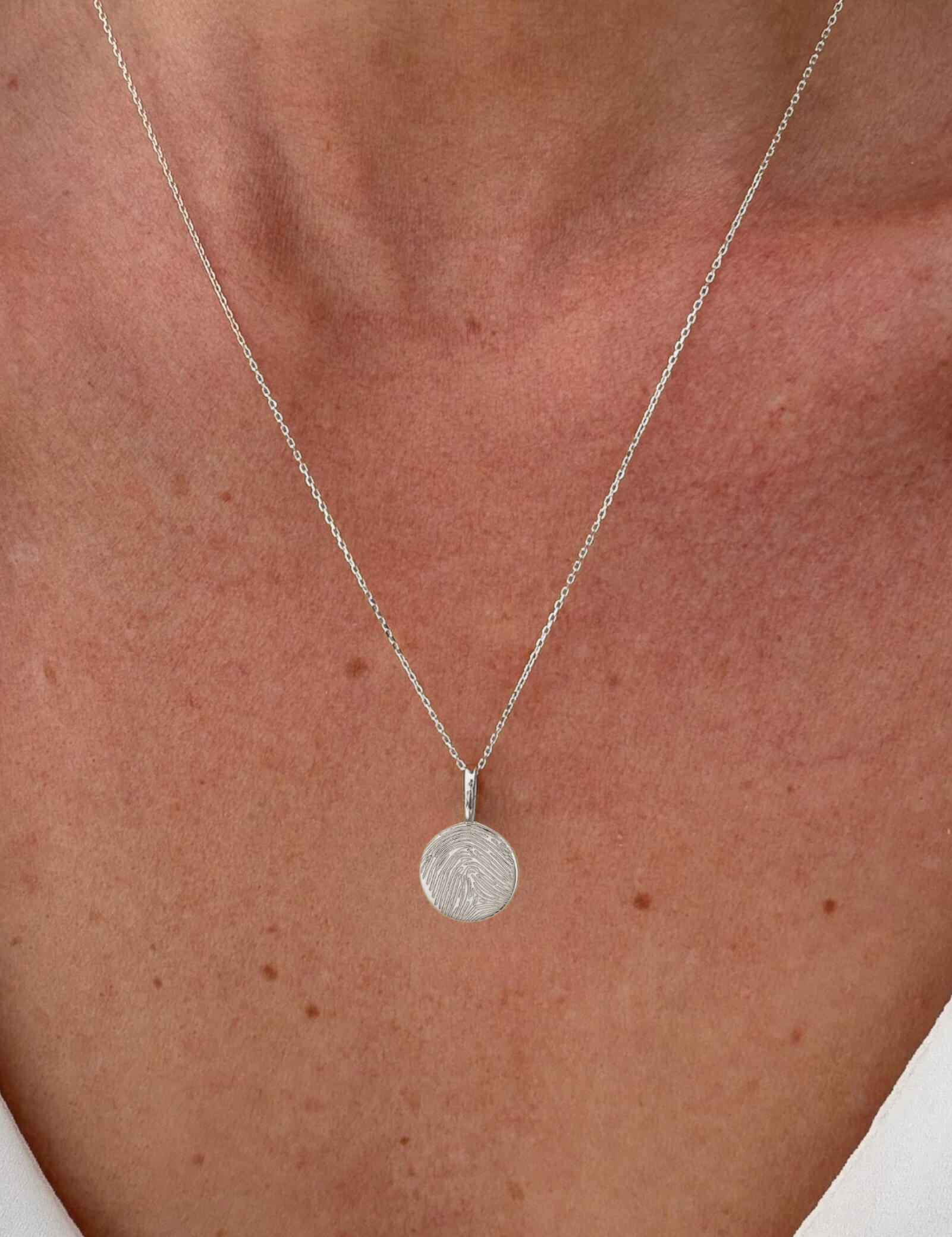 Hold onto what matters most with the Flat Disc Pendant. Crafted from sterlin silver with a sleek, high-polish finish, this timeless piece comes in three sizes, ready to be engraved with a fingerprint, paw print, artwork, or a treasured memory—creating a keepsake that’s uniquely yours.