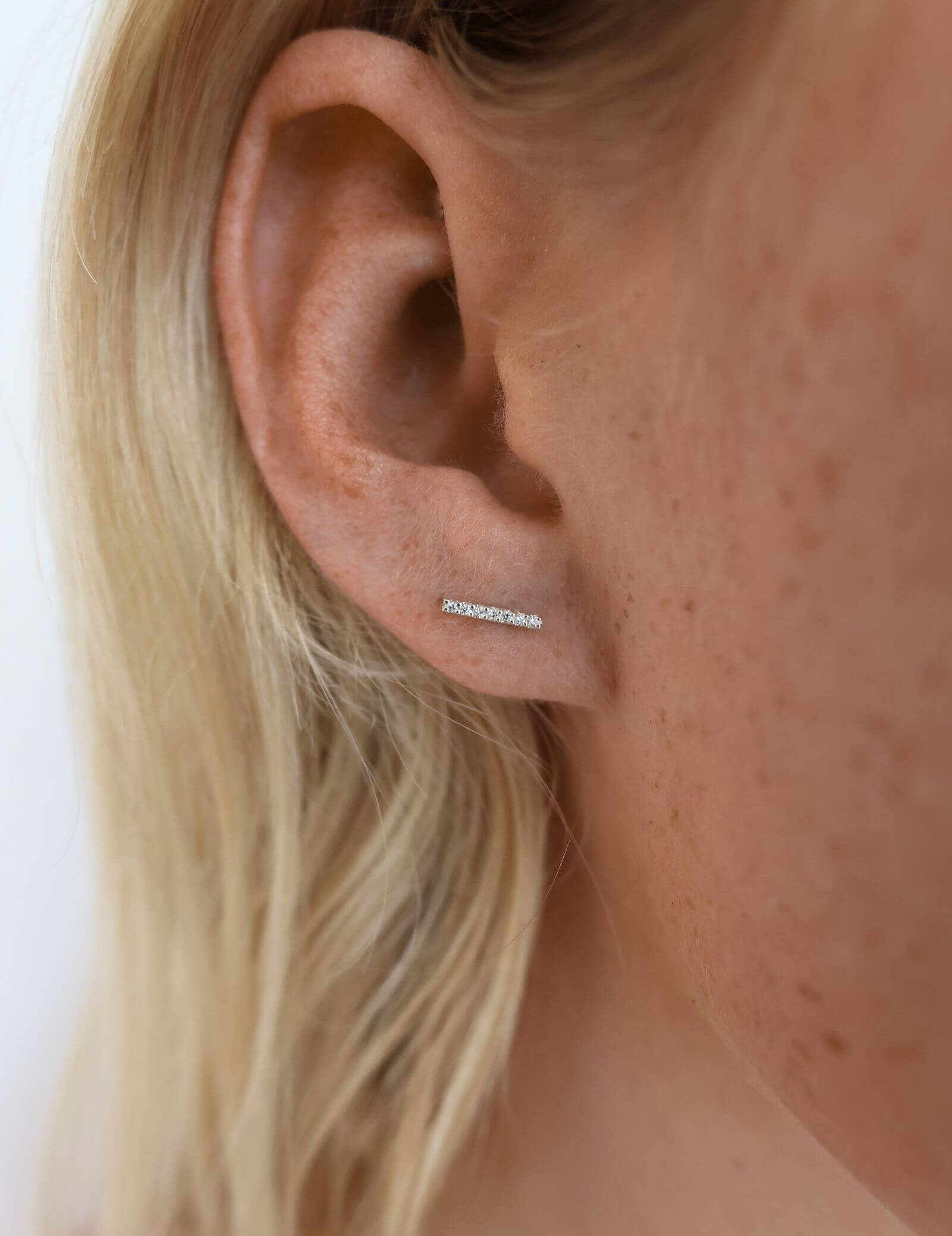 Simplicity meets elegance with our Sophia Studs. Crafted from Sterling Silver, each stud features a bar adorned with seven natural white shimmering diamonds, exuding timeless allure. Offering versatility, they can be purchased individually or in pairs, making them a perfect addition to your jewellery collection for any occasion.