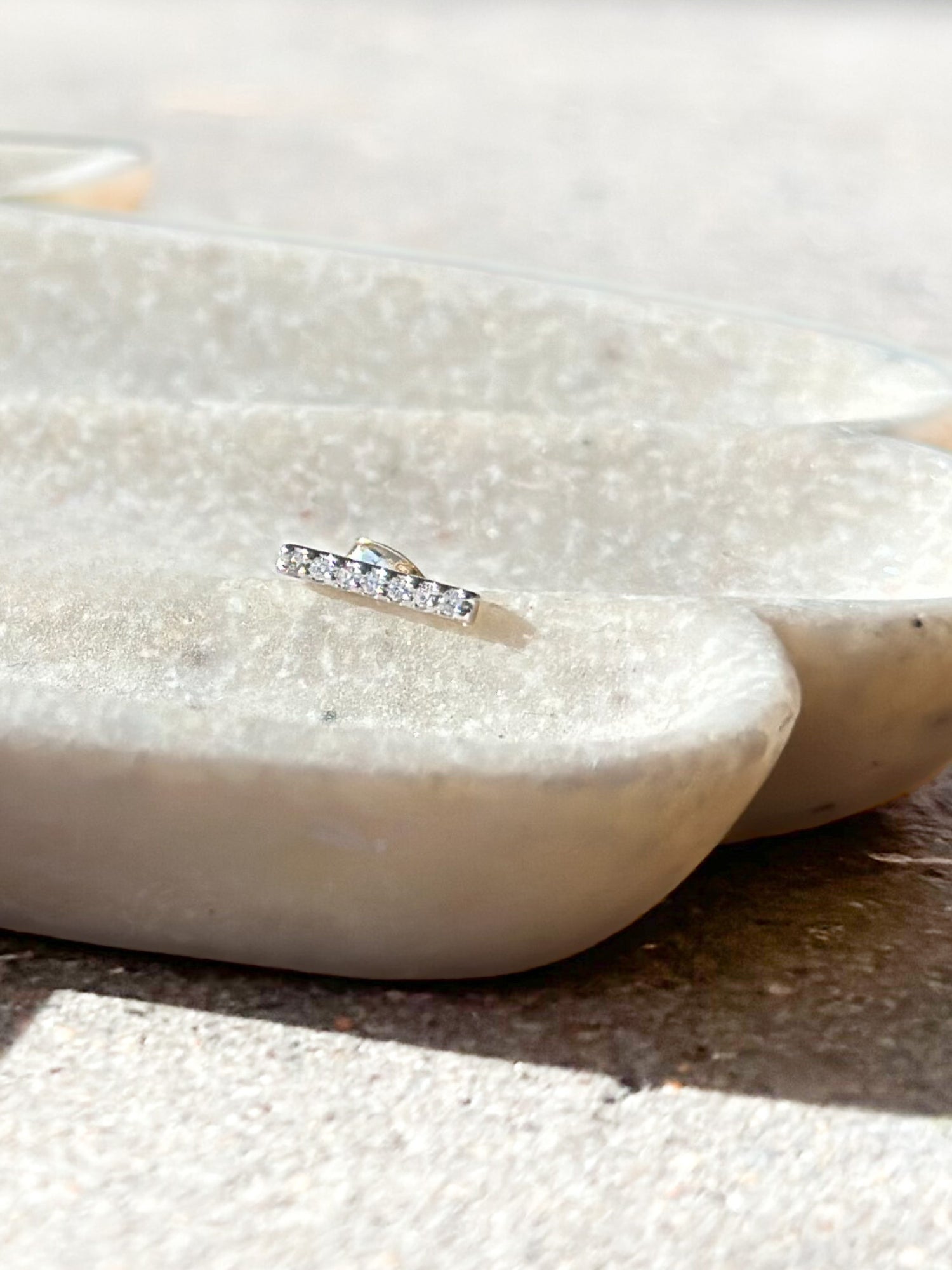 • Diamond Stud Design: The studs showcase a diamond bar adorned with 7 glistening natural white diamonds offering a perfect blend of simplicity and luxury.