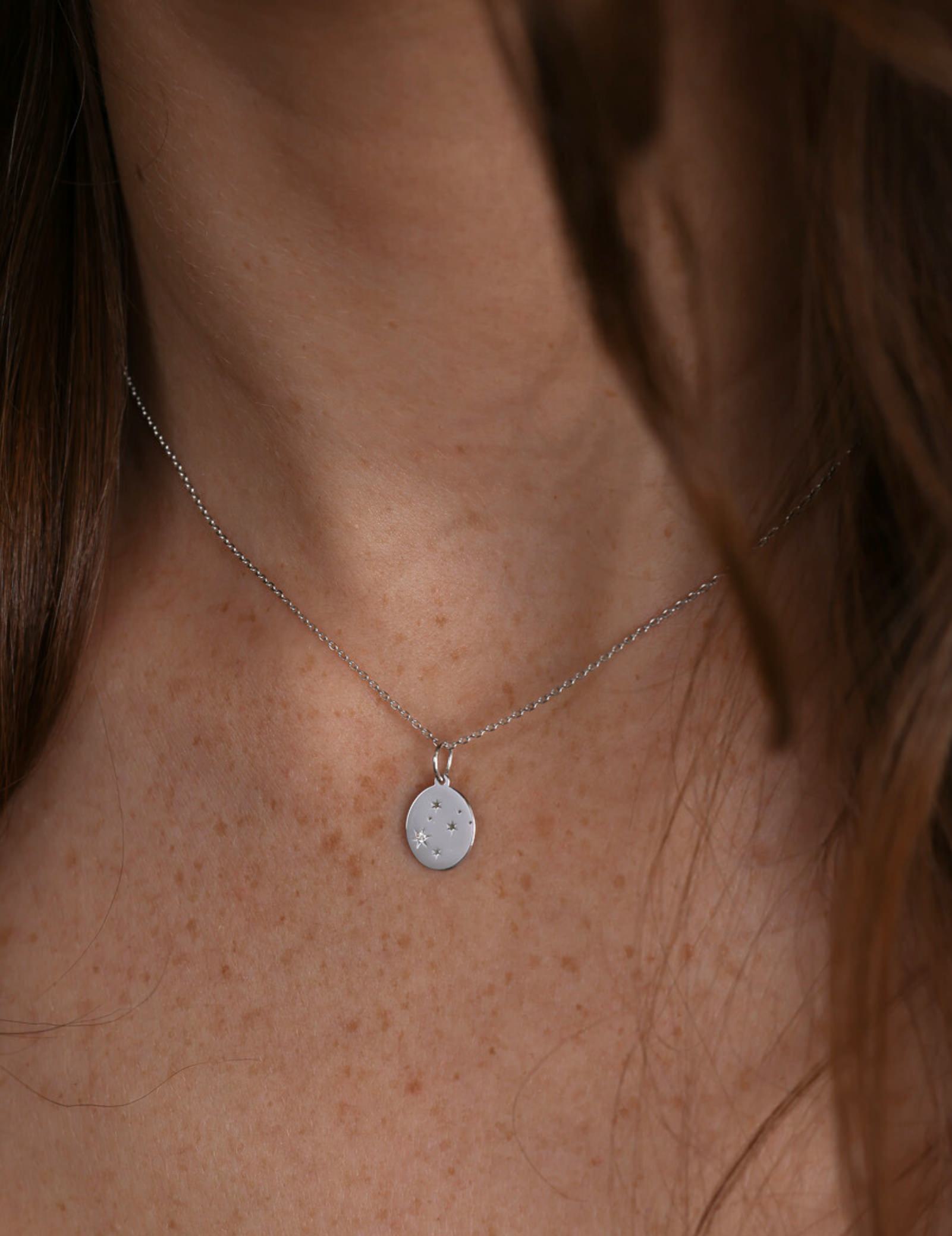 Available as a charm only or paired with either a 50cm or 45cm solid white gold chain, this necklace is versatile, meaningful, and personal to your astrological sign.