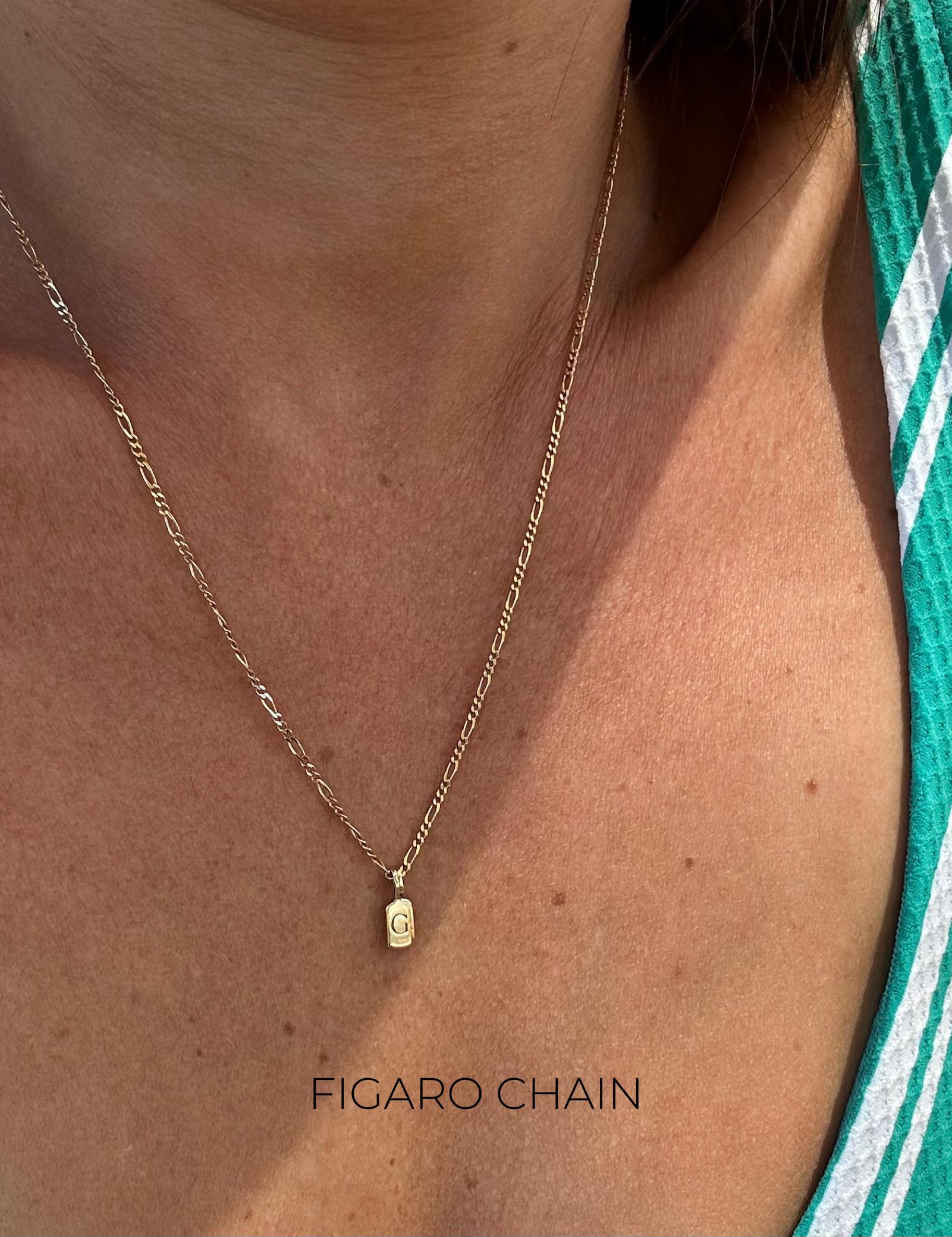 Alternatively, you may opt for the Figaro Chain, another sophisticated choice. Available in 40cm or 45cm lengths without an extension. It features a thickness of approximately 1.5mm, striking a balance between durability and refined style. The combination of the Luna Letter X charm with the Figaro Chain will result in a gold weight ranging from approximately 1.95 to 2.25 grams which are higher due to the chain's specifications.
